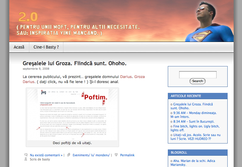 Oameni buni, am postatara si eu . Daca va enerveaza atitudinea insolenta a jegului, va poftesc sa mutati balciul la mine. Ca am scris cam tot acelasi rahat :)).